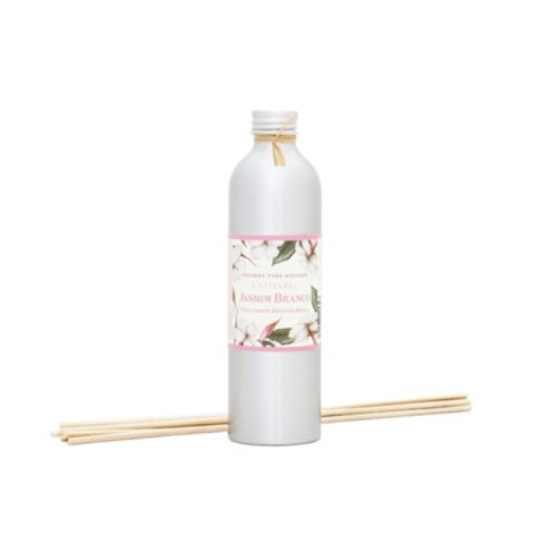 Descrição: Refinado e doce – assim é o aroma do Jasmim Branco; um perfume elegante que dá um toque de personalidade único a qualquer espaço. A Recarga de Perfume Castelbel Jasmim Branco 250mL permite-lhe voltar a perfumar o seu espaço preferido com esta fragrância sublime. Compatível com os seus difusores Castelbel e Portus Cale. O perfume não contém álcool e é dotado de uma base oleosa, sendo perfumado com óleos essenciais; isto permite que o aroma permaneça por mais tempo.