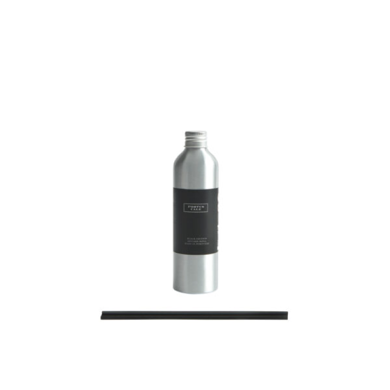 Descrição: Cítrico acentuado por notas amadeiradas e quentes – assim é o aroma de Black Edition; um perfume sofisticado e masculino. A Recarga de Perfume Portus Cale Black Edition 250 ml permite-lhe voltar a perfumar o seu espaço preferido com esta fragrância refrescante. Compatível com os seus difusores Castelbel e Portus Cale. Sticks de cor negra incluídos.
