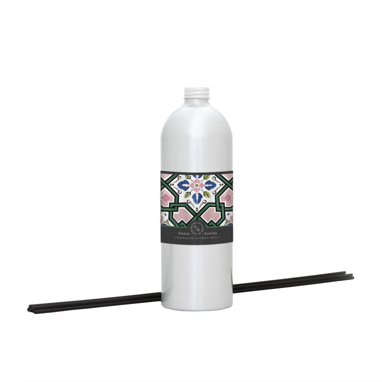 Descrição: Revigorante e leve – assim é o aroma de Sencha Verde. A Recarga de Difusor Azulejo Português 900mL permite-lhe voltar a perfumar o seu espaço preferido com esta fragrância irresistível. Compatível com os seus difusores Castelbel e Portus Cale.